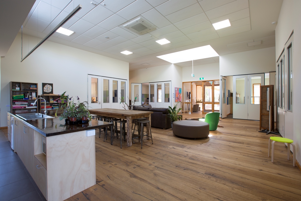 A beige Parks Victoria visitor’s building at Jells Park in Wheelers Hill was extended by 4Dimensions in 2006 to create a functional and attractive space on a limited budget.
